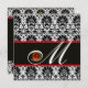 BLACK WHITE RED DAMASK MONOGRAM Ruby Invitation