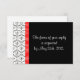 Black damask on a white background, and a bright red strip that resembles a ribbon make a stunning border for this wedding reply card. The white back makes it easy for your respondent to mark. This card matches the Black White Red Damask Monogram Wedding Invitations in my store.