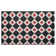 Stylish geometric fabric features a bold, graphic pattern of interlocking black and white diamond shapes. Each white diamond contains a small red diamond adding depth to the material.