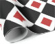 A stylish graphic pattern of interlocking black and white diamond shapes. Each white diamond contains a small red diamond adding depth to the original design.