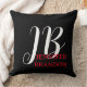 Black White Red Handwriting Monogram Add Name Cushion