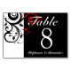 Black White Red Reverse Swirl Wedding Table Number