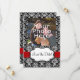 Stylish and posh black and white damask background design, with red ribbon and white frame shape. A cute wedding invitation and matching set collection. All Designs Copyright © 2012 www.CustomInvitesOnline.com