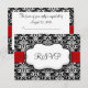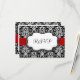 Black/White/Red Ribbon Damask Wedding RSVP Reply Card