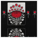 BLACK WHITE RED ROSES ,ROSEBUDS Art Nouveau Floral Fabric