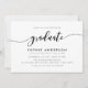 Stylish Graduation Party Invitation featuring the words "Graduate" in a relax cursive script in black against a white background. Card has a black back side featuring overlapping white lines.