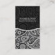White retro paisley patten on black background. Available in other on other products. Elegant black and white designers business card. This is a Template and it is fully customisable.