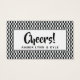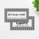 Treat your wedding reception guests to a cocktail or two with the help of these unique drink tickets. The card has been set up with this text and phrasing: on the front is "Let us buy you a drink!" and "Good for One Adult Beverage". On the back is "Cheers!" and a placeholder for your names. Just use the template fields to customise the cards with your personal details and click to customise more, if you'd like to change more than the copy. The background is covered with a black and white retro pattern that includes waves and circles split in half between the two colours. Replace this image with your own pattern, texture, or photograph, if you have a graphic you'd like to feature. The background image is partially masked with a rectangle badge which creates a plain surface for your text, which is black. // Designed by Melody Watson for Paper Muserie.