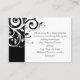 Black and White Reverse Swirl Reception cards, to be used to instruct guests on reception information including driving directions and map on back. (For best results, use Bing Maps by entering your location, click "print" to bring up the print window. Then right-click on the map and click "save as". Save the getmap.png file to your computer, then replace our sample map with your map.