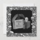 Black & white romance in gothic style. Featuring a skulls and skeletons frame with an hourglass and black crow watching over a skull head, poison bottle & spellbooks. Be sure and inscribe your names into the spellbook. Great for a gothic wedding or anniversary party.