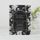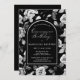 Very elegant black and white rose floral pattern creates a Quinceanera birthday invitation template. White text and calligraphy are framed by a black arch edged in white. Available in cardstock or as a digital download. This item is part of the Black and White Rose Floral Arch Collection. it contains templates to create a unique invitation suite, welcome signs and party decorations.