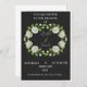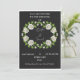 Make a bold statement with this Elegant Black & White Rose Wedding Invitation. This design features a stunning wreath of realistic white roses and lush green leaves set against a deep black background, creating a sophisticated and dramatic contrast.