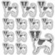 Destei's original cartoon illustration of a black and white rough coat Jack Russell Terrier breed dog. The design is placed 12 times on the sheet in three different sizes. There is one bigger dog, three medium size dogs and eight small size dogs.