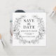 Embrace sophistication and rustic folk charm with our botanical save-the-date photo invitation. The refined bohemian design is enhanced by a stunning black and white floral wreath, creating an ideal ambiance for your upcoming celebration.