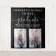 Celebrate the success of your graduate and throw a simple party with this minimalist script calligraphy two photo graduation tapestry backdrop in black background that you can hang or attach to your wall.