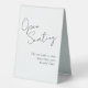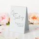 This modern, minimalistic wedding open seating sign features an elegant script front. The design plays with the simplicity of a black and white typography design. It's the perfect choice for couples who appreciate clean and modern elegance.