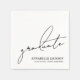 This simple and modern graduation party paper napkin features a clean white background with black fonts for a timeless, gender-neutral look that works beautifully for both boys and girls. All text is neatly placed in the bottom right corner for a sleek, understated style. “Graduate” appears in elegant handwritten script, paired with the graduate’s name, “Class of 2026” (or any year), and school name in classic serif fonts.