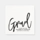 This simple and modern graduation party paper napkin features a clean white background with black fonts for a timeless, gender-neutral look that works beautifully for both boys and girls. All text is neatly placed in the bottom right corner for a sleek, understated style. “Grad” appears in elegant handwritten script, paired with the graduate’s name, “Class of 2026” (or any year), and school name in classic serif fonts.