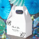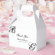 This design features the bride's and groom's initials as the main focus of the design. Personalised script initials using script font typography creates a perfect fusion of modern and elegance. A simple custom minimalist wedding favour box design with modern black and white monogram. Matching wedding invitations and stationery items are also available. To re-position the initials please click "Click to customise further" link when personalising details.