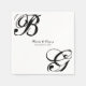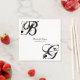 This design features the bride's and groom's initials as the main focus of the design. Personalised script initials using script font typography creates a perfect fusion of modern and elegance. A simple custom minimalist wedding napkin design with modern black and white monogram. Matching wedding invitations and stationery items are also available. To re-position the initials please click "Click to customise further" link when personalising details.