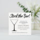 Are you celebrating the soon-to-be Mr. & Mrs. by planning a couples shower to help them stock their bar? This sophisticated but casual invitation could be the one for you! It features a modern, bold handwritten script font used to create a typography graphic overlay that reads "Stock the Bar!" This graphic, and a martini glass graphic outline beside it, are black on an editable white background. All editable type is rendered in a fun, agreeable serif font; you may use a different font if you wish. All layers are separate and unlocked so you can make any changes you might like. Just use the template fields to add your personal details and click the provided links to further customise. The back is covered in an editable black background with a white outline of a red wine glass and another "Stock the Bar!" graphic in white, smaller than on the front. These layers, too, have been left unlocked so you can re-position or remove any part you wish to change. // 89 // Design by Melody Watson for Paper Muserie.