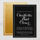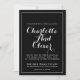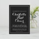 Add a modern elegant vibe to your wedding invitation with a swash script calligraphy style on a black background with white type and border overlay.