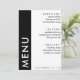 Black and white side stripe, colour block 5x7 wedding reception menu card. Personalise it with your event details.