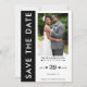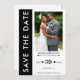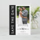 Black and white side stripe, colour block wedding save the date card. Personalise it with your event details.