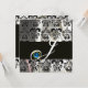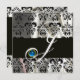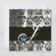 BLACK WHITE SILK DAMASK MONOGRAM BLUE SAPPHIRE INVITATION