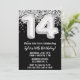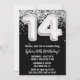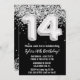 Black white and silver 14th birthday party invitation 14 birthday party invitation for a boy or girl with modern script writing and fun foil balloons.