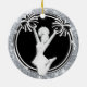 Black, White and Silver, Personalised Cheerleader Ornaments or Your School COLORS. You, or Call Designer Linda: 239-949-9090 EST, can CHANGE the Black Centre and White Text. You, or Designer Linda, can also TRANSFER this Design to your choice of THOUSANDS of other personalised cheerleading gifts, many styles of cheer ornaments, decor, cheerleading party ideas, cheer souvenirs and more. Designer Linda can CHANGE the Design parts and Silver Glitter looking design to other COLORS. Nice as cheer senior night party favours and cheer giveaways.