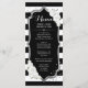 Menu Card. Classy black, white design with faux glitter silver. Features black and white stripes with white roses. Perfect for an elegant party.