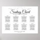 This 8 table seating chart will make it easy for your guests to find their seats at your wedding reception. Features a simple elegant design of black and white text with a silver vintage floral filigree border. Has seating assignments for 80 guests.