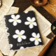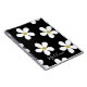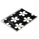 A pretty simple daisy design in white on a black background with an elegant gold center.