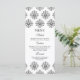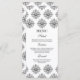 This stylish chic wedding food menu has an elegant white background with a black snowflakes damask design on the top and bottom. In the middle, you can easily customise this with your menu.
