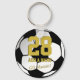 Black and white soccer ball. Customisable team player number, name, and mascot cheer in gold colour.
