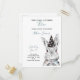 Your little baby is turning three! Invite your special guests with this adorable invitation postcard featuring a hand painted watercolor bunny rabbit, in neutral blue grey, black and white. Baby's name, "Turning Three" and the date are in neutral blue grey hand lettered script typography, and personalised in a chic modern black sans serif. Copyright Elegant Invites, all rights reserved.