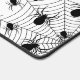 Black and White spider web Halloween Desk Mat. Cool fun pattern with Spooky Halloween cobweb design. Custom white with big and small scary crawling spiders.
