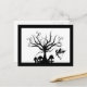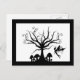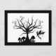 Send a little spooky greeting with this creepy fairy postcard. Black and white silhouette design depicts a small fairy flying near a tree with curly, swirled branches. Small toadstools of varying sizes grow below the tree. Design is framed by a black border. Perfect gift for any Halloween, fairy, or fantasy lover. Customise and/or personalise the design with your own text.