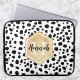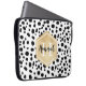 Black White Spots Pattern Gold Monogram Laptop Sleeve