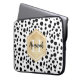 Stylish Dalmatian spots pattern with a faux gold foil label featuring customisable name and monogram templates. A cute monogrammed laptop sleeve with black and white spots pattern and golden elements. To change the font colours and font styles click the "personalise" button and then click the "customise further" button.
