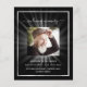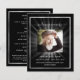An elegant 2-page program. A classic black background, a faux silver looking frame, and space for a photo. Light beams behind the photo. Personalise and add name, dates and your text.