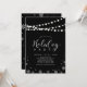 Celebrate the season with this modern holiday party invitation. This design features stylish string lights, snowflakes, and typography " Christmas PARTY" in black and white. You can customise the text and background colours. A great design for a chic modern Christmas dinner party, or corporate / business / office holiday party.