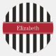 Black White Stripe Cranberry Name Monogram Classic Round Sticker