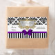 Black White Stripe Damask Purple Bow Ribbon Party Water Bottle Label