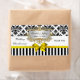 Black White Stripe Damask Bright Yellow Bow Ribbon Party Wine Label