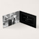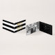 Stylish personalised photo Christmas cards with black and white striped background with gold foil effect "Merry & Bright" typography design - add your photo inside card.