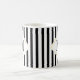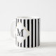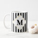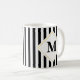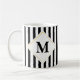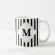 Black and white stripes with a white diamond with gold trim and a customisable monogram.