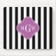 Black White Stripe Orchid Quatrefoil 3 Monogram Mouse Pad