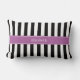 Black White Stripe Orchid Ribbon Name Monogram Lumbar Cushion